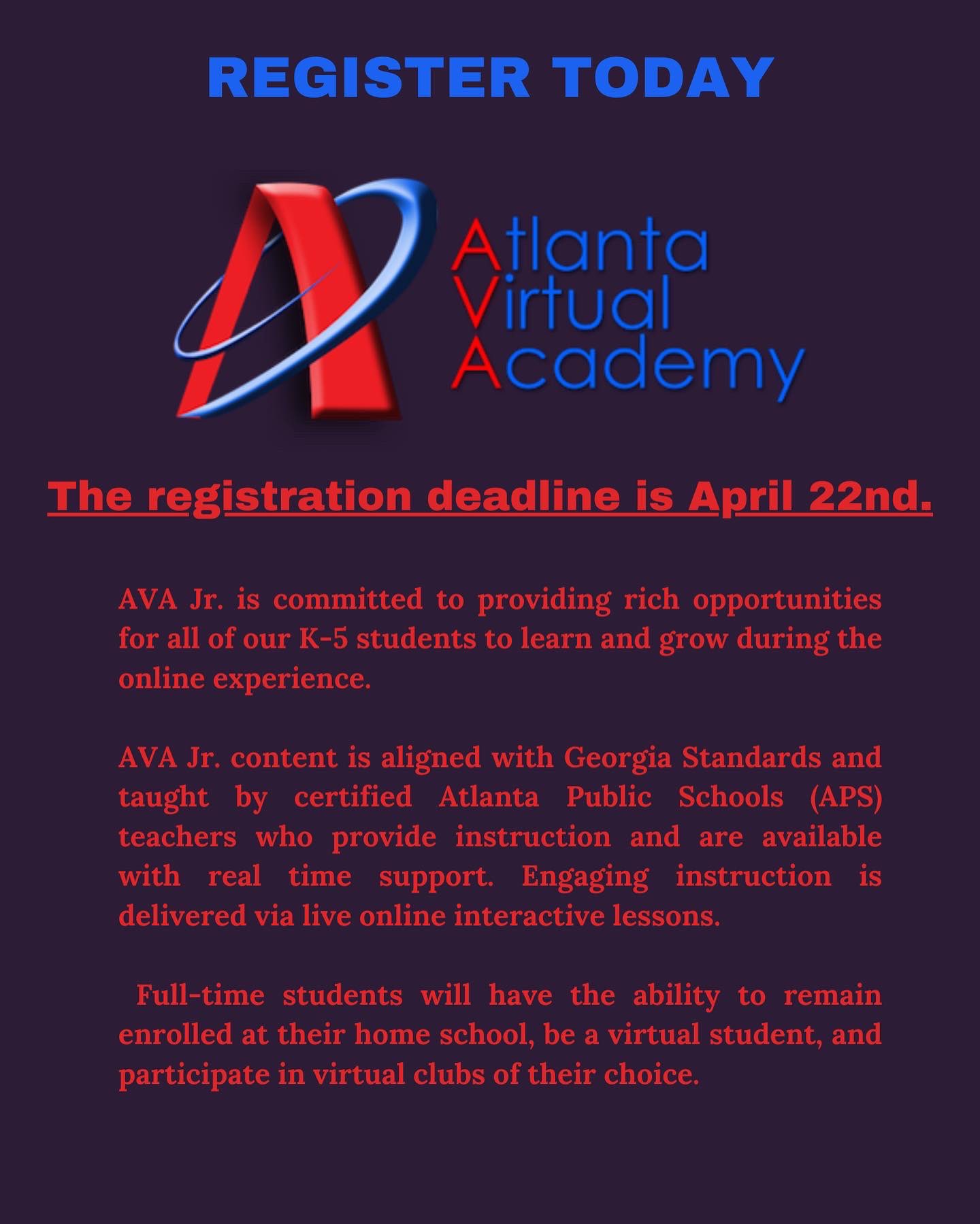The Atlanta Virtual Academy AVA is a fully accredited online learning environment that is available to middle and high school students in the Atlanta Public Schools system. Browse 37 GEORGIA VIRTUAL ACADEMY job 31K-62K listings hiring now from companies with openings. Georgia Cyber Academy GCA is a rapidly growing organization that offers our teachers and staff members the excitement of exploring an emerging concept in education.